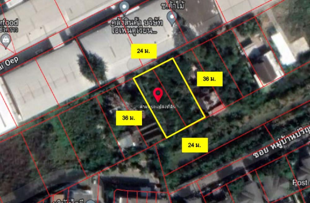 - ที่ดินกว้าง 24 เมตร, ลึก 36 เมตร