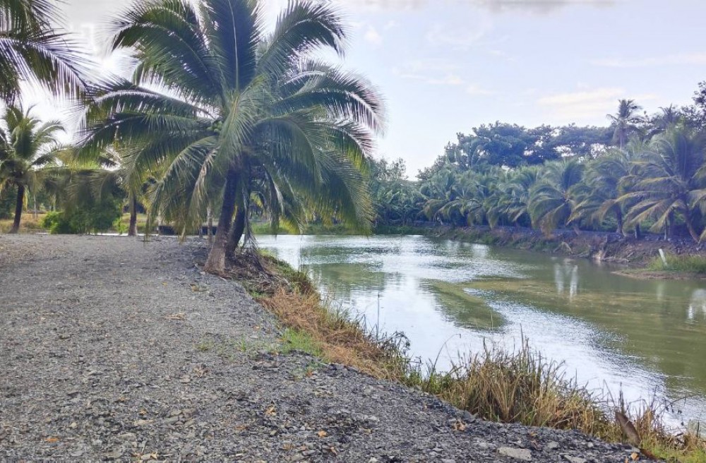 ในพื้นที่ มีบ้าน ปลูกมะพร้าวน้ำหอม มะนาว มีบ่อเสียงปลา พร้อมศาลาริมน้ำ มีถนนรอบบ่อ