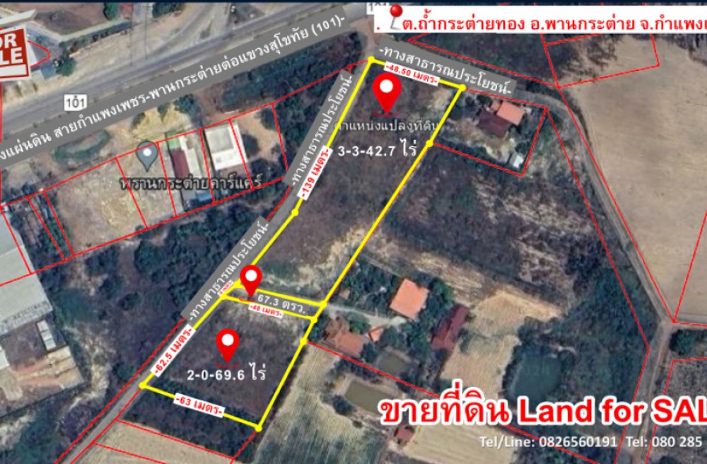 พรานกระต่าย , จังหวัดกำแพงเพชรขาย ที่ดิน รวม 3 แปลง ใกล้ทางหลวงแผ่นดินสายกำแพงเพชร(101) 6 ไร่ 79.6 ตรว เพียง14 เมตรเท่านั้น