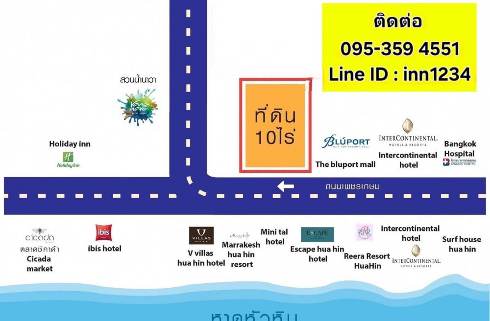 หัวหิน , จังหวัดประจวบคีรีขันธ์ให้เช่าหรือขายที่ดินหัวหิน 10ไร่ แปลงสวยที่สุดในหัวหินณ.ตอนนี้ อยู่ใจกลางเมืองหัวหิน ห่างจาก The Mall Blue port ประมาณ 400 เมตร สอบถามข้อมูลเพิ่มเติม 095 359 4551 Line ID: inn1234 https://line.me/ti/p/HlCFaicKi4
