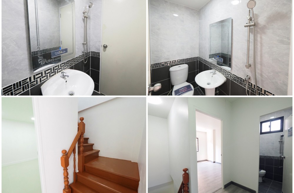 - ภายในปูพื้นด้วยแกรนิตโต้อย่างดี ชั้นบนปูพื้นไม้ลามิเนต ทาสีตกแต่งใหม่ ประตู-หน้าต่างอลูมิเนียมบานเลื่อน ห้องน้ำสไตล์โมเดิล ระบบไฟLed บ้านพร้อมเฟอร์นิเจอร์ แต่งครบ ห้องนอนมีหน้าต่าง ครบทุกห้อง พร้อมห้องน้ำในตัว ห้องโถงขนาดใหญ่ อากาศถ่ายเทดีเยี่ยม พร้อมโซฟา ชั้นวางทีวี ปั้มน้ำ จอดรถในบ้านได้ 1 คัน