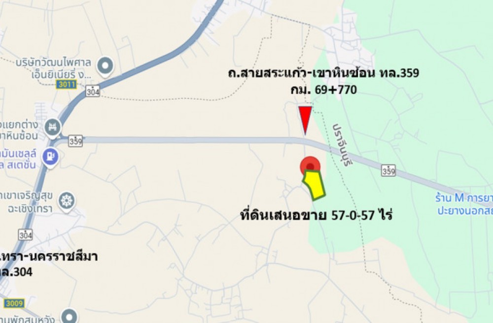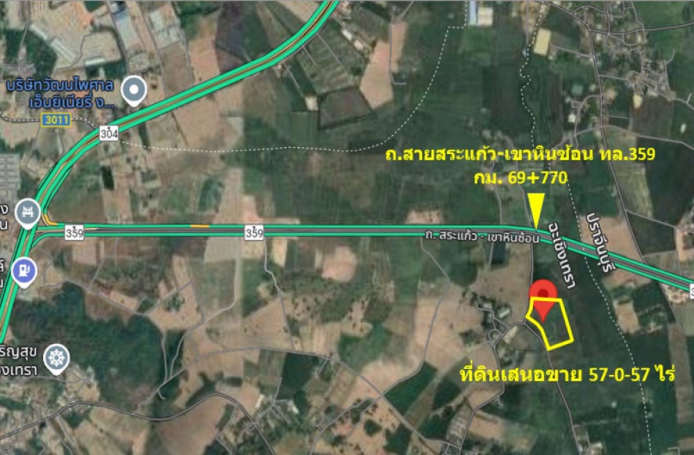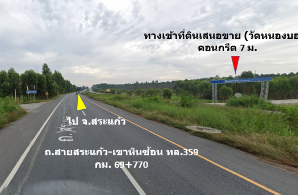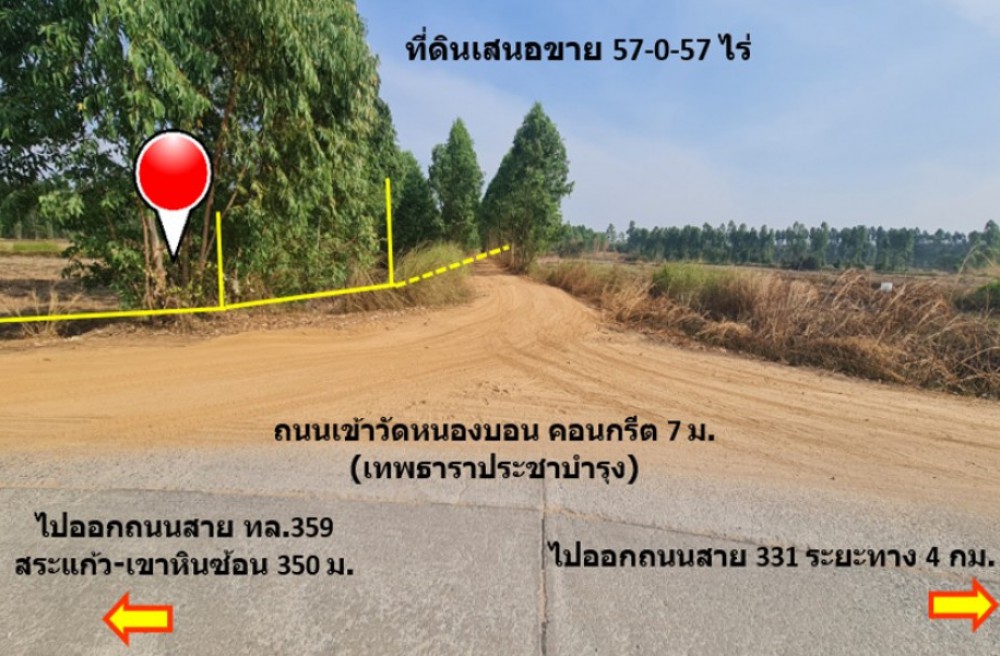 พนมสารคาม , จังหวัดฉะเชิงเทราขาย ที่ดิน ย่านถนนสายเขาหินซ้อน-สระแก้ว ทล.359 เนื้อที่ 57 ไร่ 57 ตรว เขตพัฒนาพิเศษภาคตะวันออก EEC ผังเมืองสีเหลือง ประเภทชุมชนชนบท