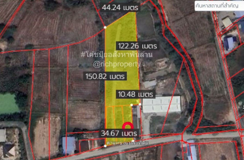 - หน้ากว้าง 34 m, ยาว 150 m. (ลักษณะรูปแปลงดังรูป)