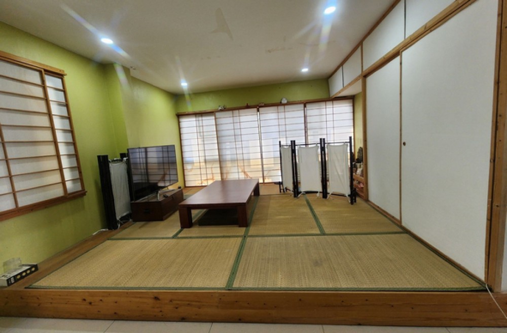 - ชั้นล่างตกแต่งพื้นกระเบื้อง พร้อมบิ้วอินเคาเตอร์ครัว ขนาดใหญ่