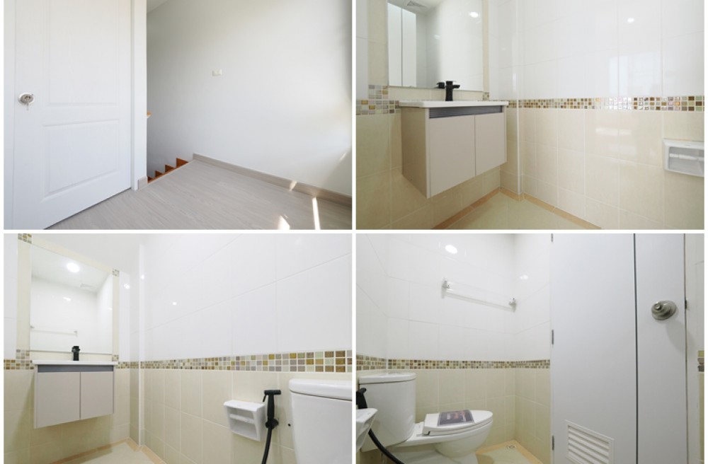 - ภายในปูพื้นด้วยแกรนิตโต้อย่างดี ชั้นบนปูพื้นไม้ลามิเนต ทาสีตกแต่งใหม่ ประตู-หน้าต่างอลูมิเนียมบานเลื่อน ห้องน้ำสไตล์โมเดิล ระบบไฟLed ห้องนอนมีหน้าต่างครบทุกห้อง ห้องนอนพร้อมเฟอร์นิเจอร์ แต่งครบครัน โต๊ะ ตู้ เตียง มีห้องน้ำในตัวแต่งพร้อมใช้ ห้องโถงขนาดใหญ่พร้อมโซฟาและชั้นวางทีวี โต๊ะทานข้าว อากาศถ่ายเทดีเยี่ยม จอดรถในบ้านได้ 1 คัน
