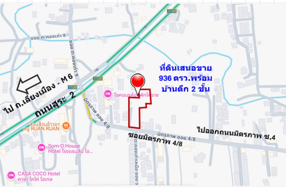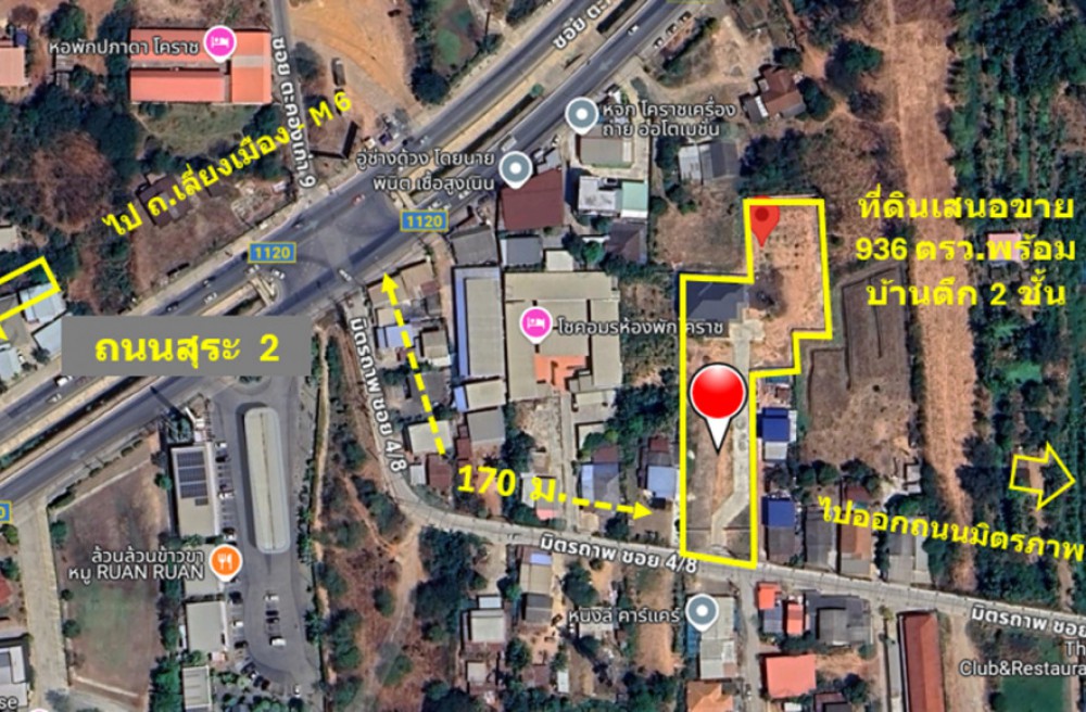 เมืองนครราชสีมา , จังหวัดนครราชสีมาขาย บ้านเดี่ยว 2 ชั้น ย่านอยู่อาศัยและธุรกิจการค้า ถนนสุระ 2 ซ.มิตรภาพ 4/8 พื้นที่อาคาร 386 ตรม 2 ไร่ 1 งาน 36 ตรว ฟรีโอน