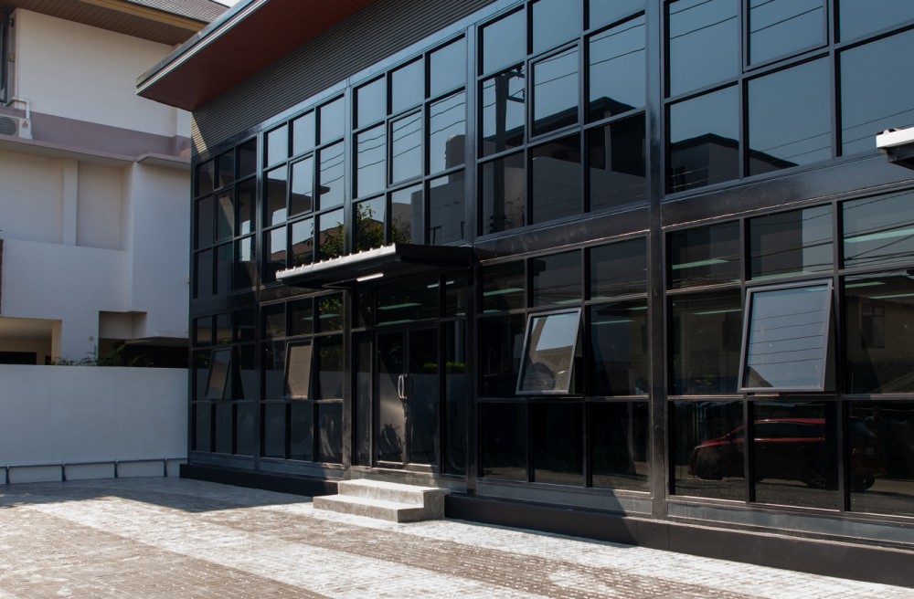 ที่จอดรถ : พื้นที่ 200 ตร.ม. หน้าอาคาร กว้าง จอดรถได้หลายคัน