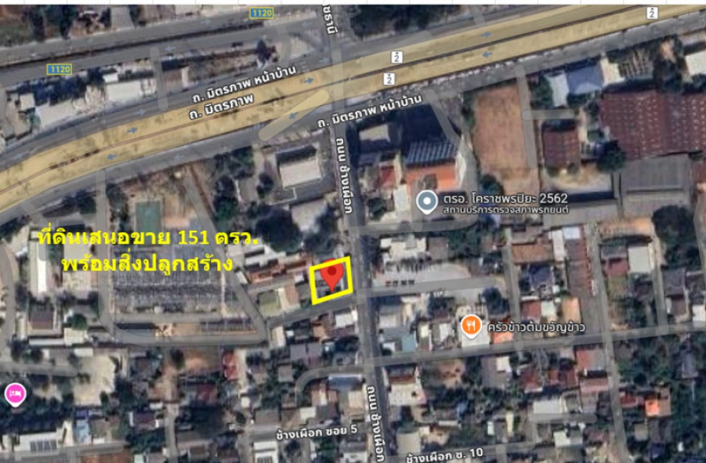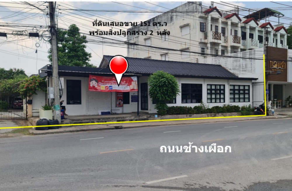 ที่ดิน 151 ตร.วา ติดถนนช้างเผือก ใกล้แยกประโดก (พีกาซัส) แค่ 120 ม.