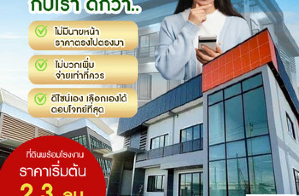 ขายที่ดินพร้อมรับสร้างโรงงาน โกดัง โครงการใหม่ ราคาเริ่มต้นเพียง 2.3 ล้าน