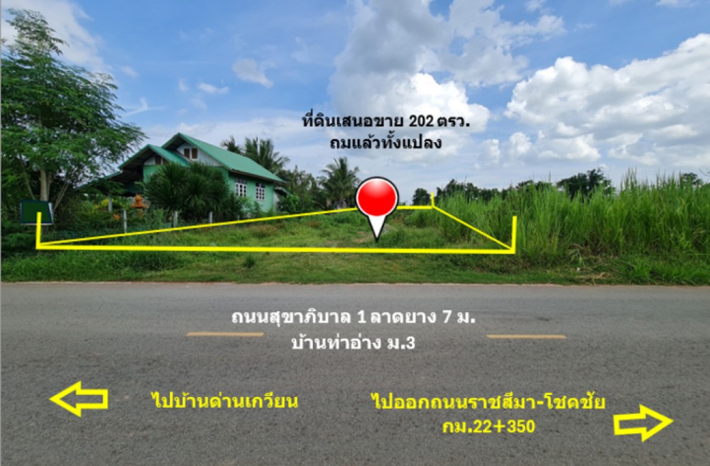 โชคชัย , จังหวัดนครราชสีมาขาย ที่ดิน ในเขตเทศบาล ใกล้บ้านด่านเกวียน (แหล่งเครื่องปั้นดินเผา) บ้านท่าอ่าง ม.3 เนื้อที่ 2 งาน 2 ตรว ผังเมืองรวมจังหวัด สีชมพู ฟรีโอน