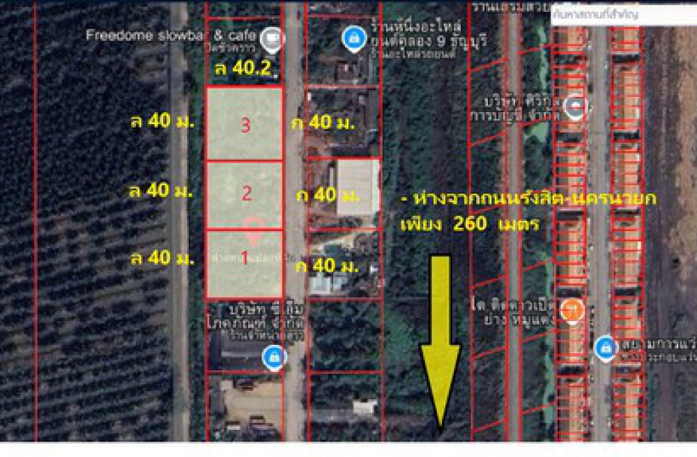 อยู่ใกล้ถนน รังสิต-นครนายก หน้าที่ดินเป็นถนน คอนกรีต 12 เมตร