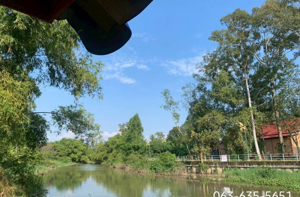 หน้าติดถนนคอนกรีตในซอยประมาณ 5 เมตร ท้ายติดแม่น้ำประมาณ 34 เมตร