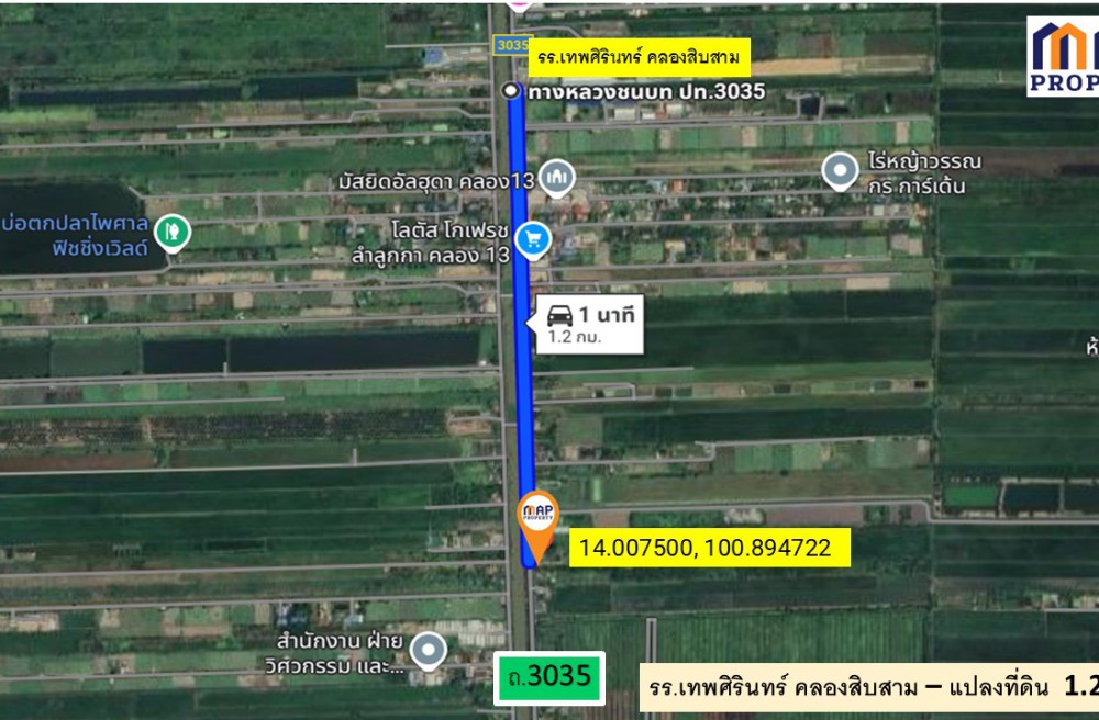 -ติดถนน คลอง13 (3035) และถนนคลอง 14 (3011)