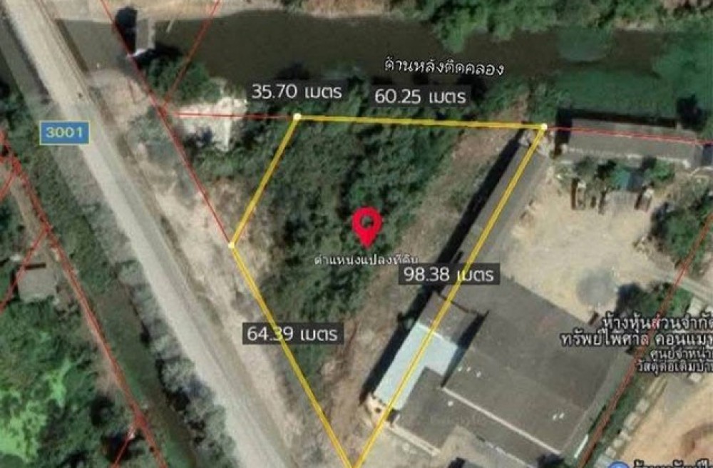 ด้านหน้ากว้าง 64 เมตร ติดถนนใหญ่ 4 เลน (สาย 3001)