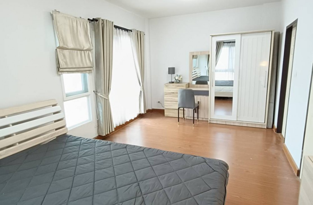 ห้องนอนห้องใหญ่ที่นอน 6 ฟุตพร้อมตู้เสื้อผ้า