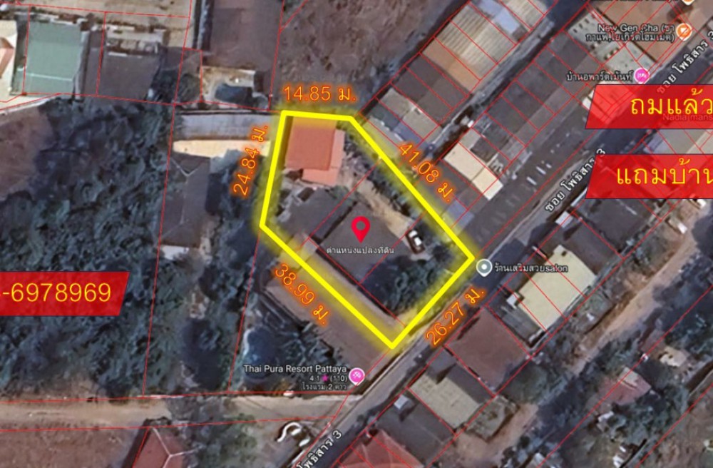บางละมุง , จังหวัดชลบุรีขายที่ดินพร้อมบ้าน ซอยโพธิสาร 3 พัทยาเหนือ ขนาดที่ดิน 336 ตร.วา เหมาะทำโรงแรม หรือธุรกิจต่างๆ