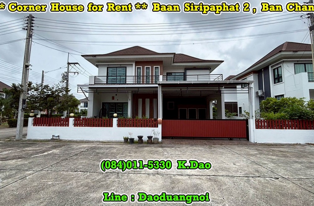 บ้านฉาง , จังหวัดระยอง*** Corner House for Rent ****** Corner House for Rent ***Ban Siripaphat 2, Ban ChangWalkable Distance to Garden International School
