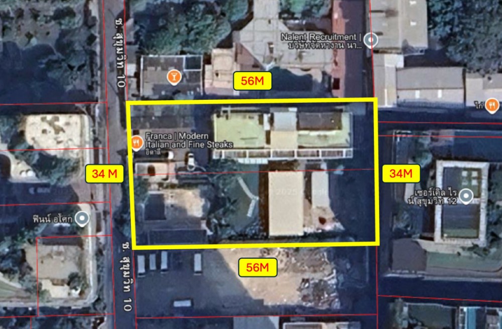 - ที่ดินกว้าง 34 เมตร ลึก 56 เมตร