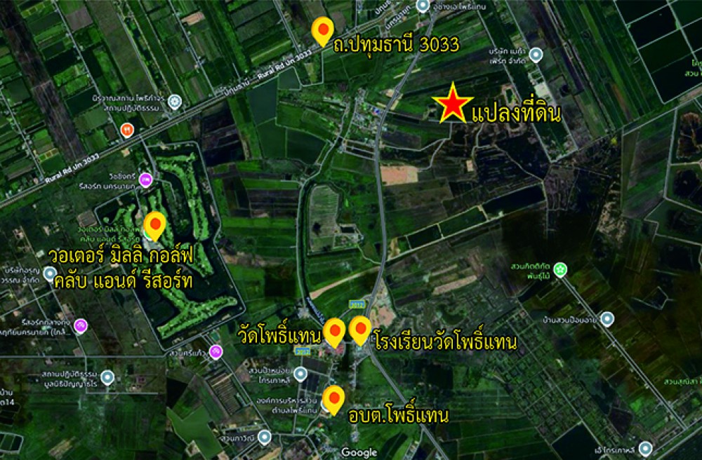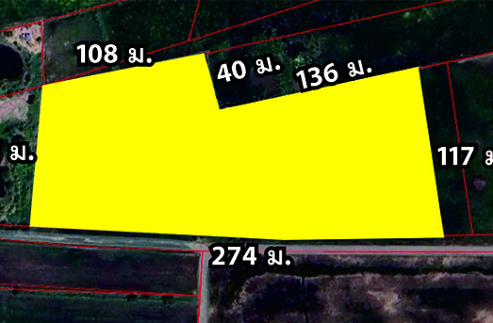 - หน้ากว้างติดถนน 274 ม. ลึก 123 ม., ใกล้แหล่งชุมชน, สถานที่ราชการ
