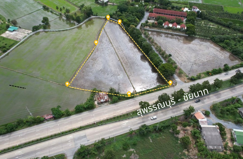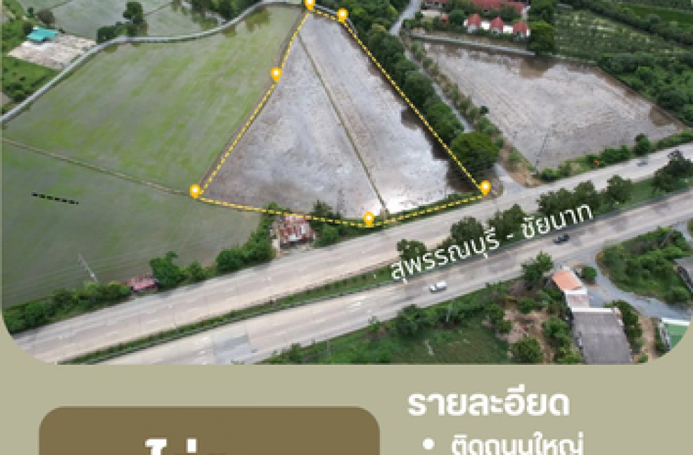 ที่ดินติดถนนใหญ่ “สุพรรณบุรี–ชัยนาท” ใกล้แม่น้ำท่าจีน ฝั่งขาเข้าสุพรรณ เดินทางสะดวกทุกเส้นทาง