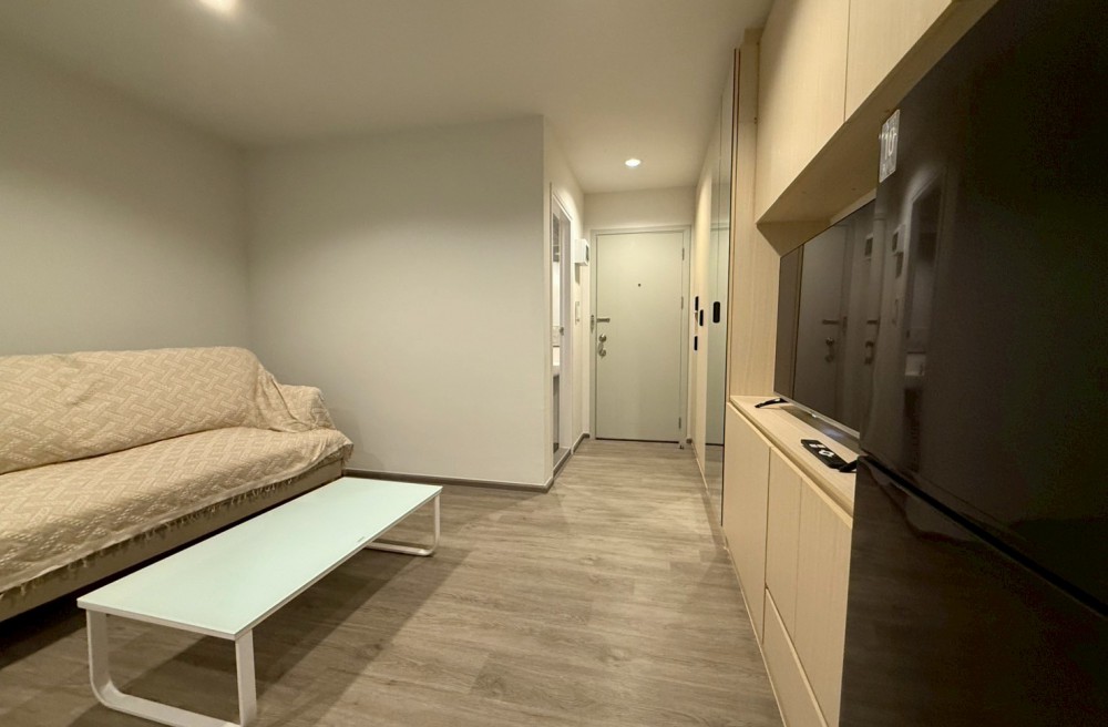 Furniture and Electrical appliances: Two 9,000 BTU air inverter, Eye-cat door and dead lock, key card Mirror sliding door between living room and the bedroom, Mirror sliding door between kitchen and living room, Mirror sliding door between living room and terrace Bathroom, dress up mirror in the rest room, two dress up mirror at the wardrobe, sofa bed for 3 seats, LCD TV 43 inches, one multipurpose table, bed and mattress 6 feet, blackout curtain in the bedroom, microwave oven, two doors refrigerator, soap dish Sanitary ware, wash basin, shower, one electric shower, washing machine, free one parking, water supply direct paid to Condominium Juristic Person, electricity directly paid to Electricity Generating Authority of Thailand
