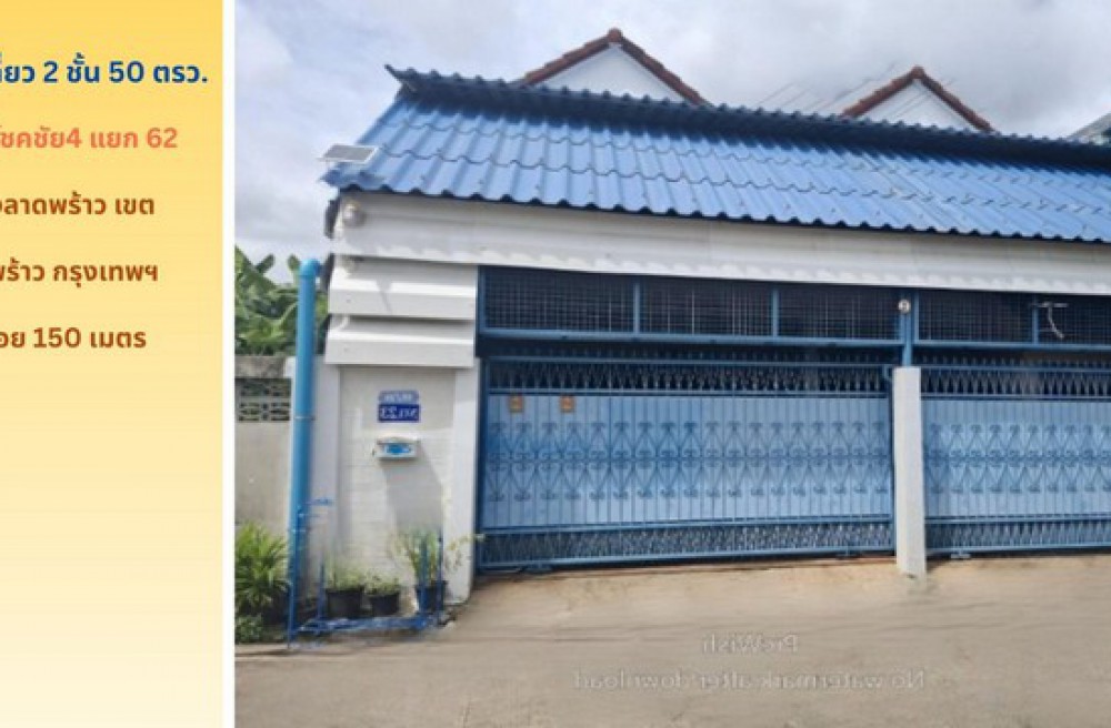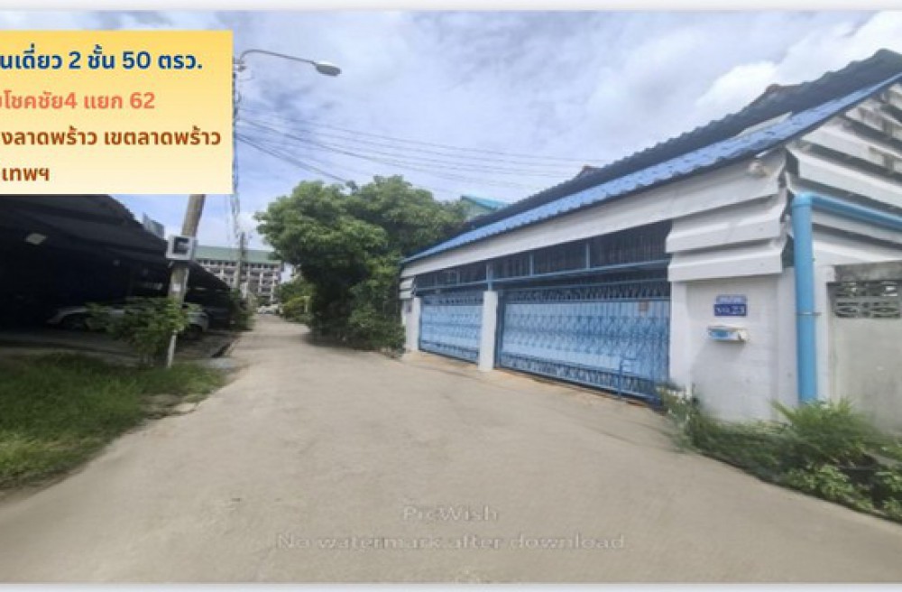 เขตลาดพร้าว , จังหวัดกรุงเทพมหานครขายถูกบ้านเดี่ยว 2 ชั้น 50 ตรว ซอยโชคชัย4 แยก 62 เข้าซอยเพียง 150 เมตร ใกล้รถไฟฟ้าสายสีเหลืองสถานีโชคชัย4 600 ม. มีห้องจำนวน 6 ห้องนอนใหญ่ 3 ห้องนอนย่อย 4 ห้องน้ำ จอดรถได้ 2 คัน พื้นที่ใช้สอย 350 ตรม. ถนนซอยคอนกรีต กว้าง 6 เมตร จากปากซอยโชคชัย4 ถึงถนนหลักลาดพร้าวเพียง 2.5 กม.