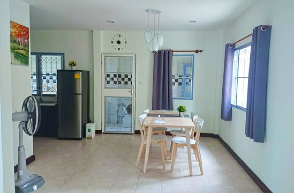 Waterside Karaoke Restaurant MRT MaiLap 2.7km. 2-story detached house for rent 150sq.m. 37sq.wa. Kaset-Nawamin area Fully furnished convenient comfortable and safe Satriwitthaya 2 School 1.1 km. away 3 bed 2 bath Pho Suwan Market 1.4 km. away 23,999B-M. Great location with multiple access points