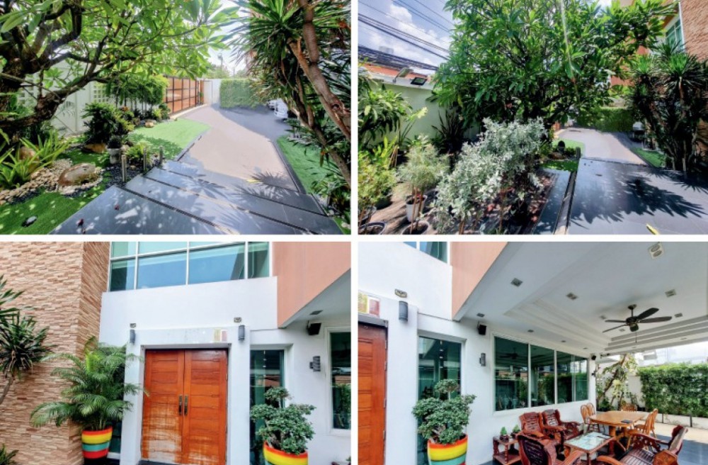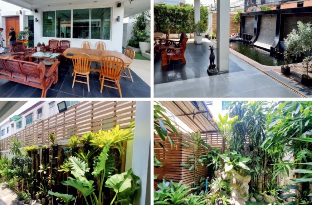 สวนล้อมรอบตัวบ้าน พร้อมสระน้ำด้านหน้า และฟังก์ชันตั้งเวลาเปิด–ปิดน้ำพุ เพิ่มบรรยากาศผ่อนคลาย