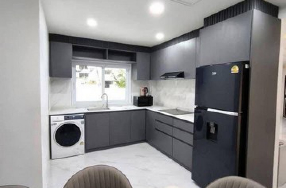 ครัวยุโรปพร้อมเครื่องซักผ้า ไมโครเวฟ เครื่องปิ้งขนมปัง กาต้มน้ำ ฯลฯ
