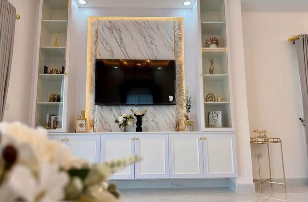 - ฟรีชุดชั้นวางทีวีบิ้วอินห้องรับแขกและห้อง นอนใหญ่ 2 ห้อง