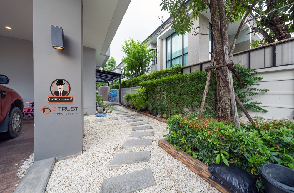 ๐ อยู่ต้นโครงการ ใกล้สโมสร ๐ ด้านหลังต่อเติมครัว เเละทำพื้นที่อเนกประสงค์ ลงเสาเข็มไมโครไพล์ (Micropile) 17ต้น ลึก 18-20 เมตร ๐ จอดรถในบ้านได้ 3คัน ๐ ชั้นล่างมี 1ห้องนอน