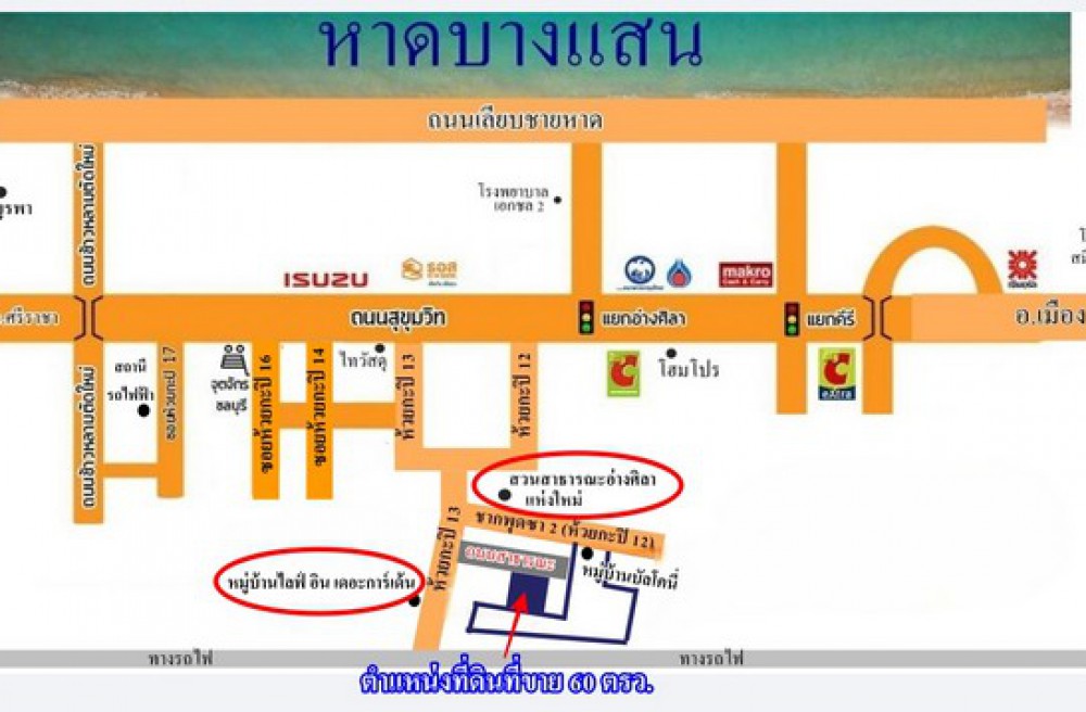 เมืองชลบุรี , จังหวัดชลบุรีขายที่ดิน 60 ตรว. ถมแล้ว อยู่ในซอยห้วยกะปิ 12 , 13 และ 16 ปากซอยเป็นที่ตั้งของ ห้างไทวัสดุ แปลงที่ดินอยู่ใกล้หมู่บ้าน ไลฟ์ อินเดอะการ์เด้นท์ (Life In The Garden) และอยู่ติดกับหมู่บ้าน บัลโคนี่ ( Balcony ) น้ำไม่ท่วม