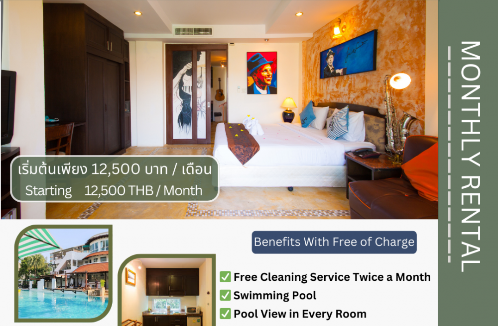 ฟรีทำความสะอาดห้อง 2 คัร้ง / เดือน