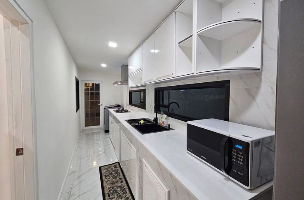 พื้นที่ใช้สอย 228 ตร.ม. 3 ห้องนอน | 2 ห้องน้ำ เฟอร์นิเจอร์ครบ พร้อมเข้าอยู่ แอร์ 4 เครื่อง ทีวี Smart TV ขนาด 55 นิ้ว 2 เครื่อง เครื่องซักผ้า / ไมโครเวฟ / เตาแก๊ส เครื่องทำน้ำอุ่น 2 เครื่อง โต๊ะรับประทานอาหาร 6 ที่นั่ง ตู้เย็น Side by Side ขนาด 18.9 Q Wi-Fi พร้อมใช้งาน สนามหญ้าข้างบ้าน จอดรถในบ้านได้ 1 คัน