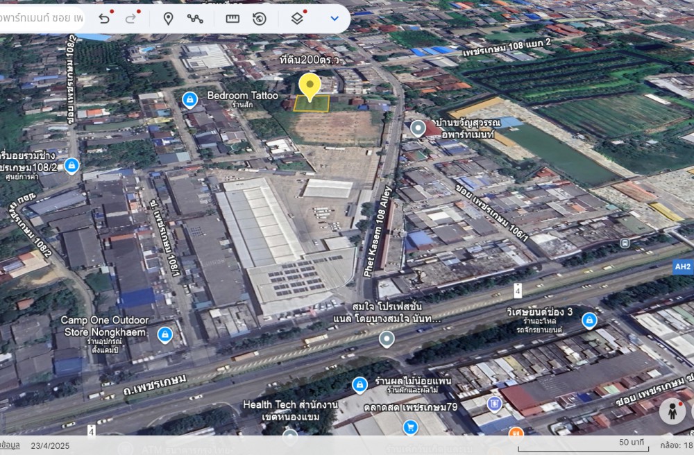 ✅Land for sale, 200 sq. wah. Yellow area, already filled, 25 m. wide frontage, on Phetkasem Road 108, Soi Rueang Mani Nong Khaeng Phlu Subdistrict, Nong Khaem District, Bangkok 350 m. from Phetkasem Road, near the Nong Khaem District Office and Wat Udom Rangsi Total price: 7 million baht For more information, contact Khun Sri at 094 821 6456. Owner selling directly. https://maps.app.goo.gl/EJ9hNy1tQc7CYfHL7