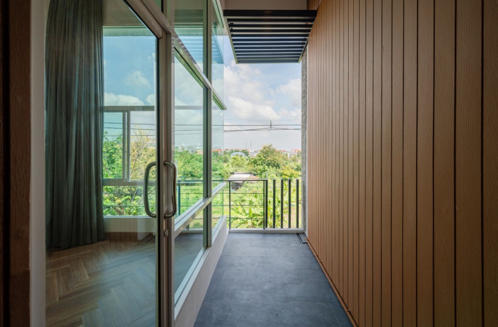 ห้องนอนใหญ่ของชั้น 2 และ ชั้น 3 มีระเบียงสามารถไปรับลมได้