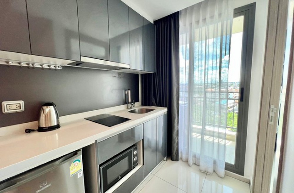 1 ห้องนั่งเล่น 1 ห้องครัว มีระเบียง วิวเมือง