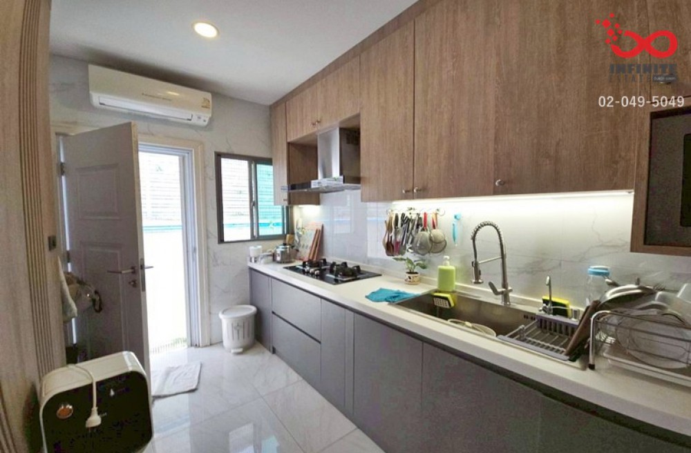 ตกแต่ง : แอร์ 9 เครื่อง ลิฟต์โดยสาร เฟอร์นิเจอร์บิวท์อิน ต่อเติมครัวโรงจอดรถ
