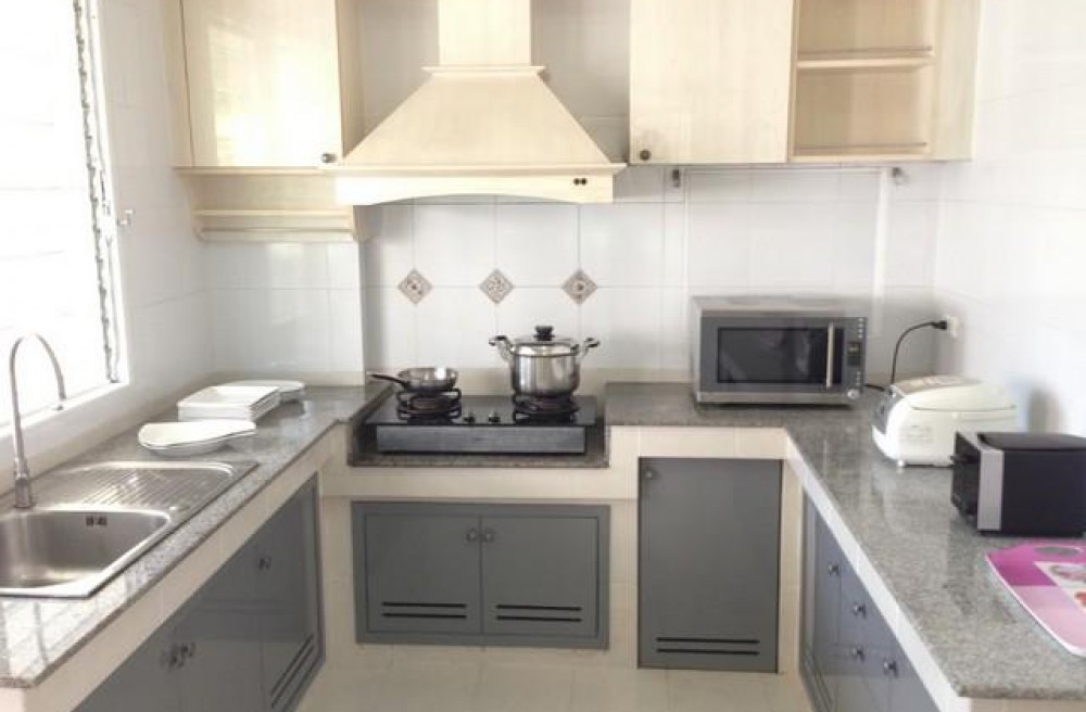 ครัวบิวท์อิน มาพร้อมเครื่องดูดควันแบบต่อท่อระบายอากาศออกด้านนอก ช่วยป้องกันกลิ่นอาหารรบกวน