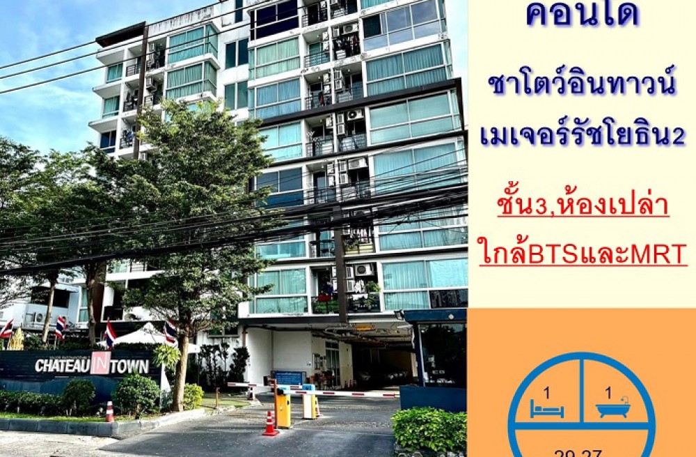 เขตจตุจักร , จังหวัดกรุงเทพมหานครขายคอนโดชาโตว์อินทาวน์ เมเจอร์รัชโยธิน เฟส2 ชั้น3 ขนาด29.27ตรม. ใกล้ทั้งBTSและMRT