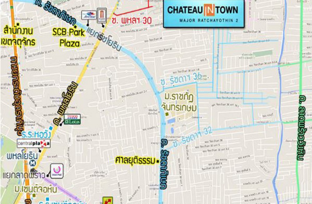 การเดินทาง ถนนพหลโยธิน > ซอยพหลโยธิน 30 > — 800 ม. —> Chataeu In Town เมเจอร์ รัชโยธิน2 *ใกล้เมเจอร์ รัชโยธิน