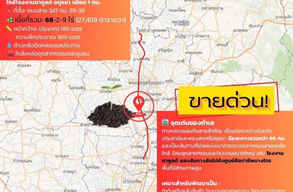บางปะอิน , จังหวัดพระนครศรีอยุธยาขายที่ดินติดถนนเแปลงใหญ่สวย ติดถนนสาย 347 ปทุมธานี-บางปะหัน ต.บางประแดง อ.บางประอิน จ.พระนครศรีอยุธยา กม. 29-30