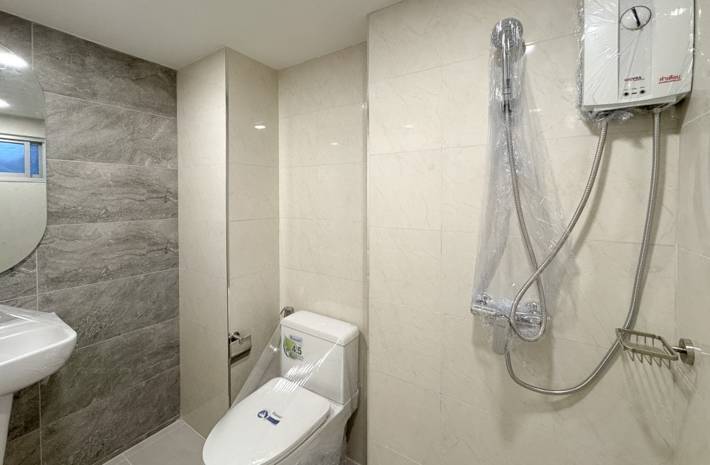 - ห้องน้ำรีโนเวทใหม่หมด ปูกระเบื้องและติดสุขภัณฑ์ใหม่