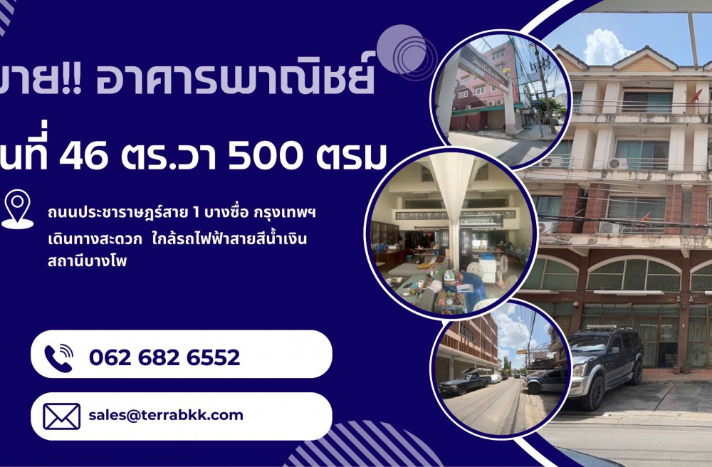 เขตบางซื่อ , จังหวัดกรุงเทพมหานคร- ขายอาคารพาณิชย์ เนื้อที่ 46 ตร.วา 500 ตร.ม. พร้อมที่จอดรถหน้าอาคารได้ถึง 4 คัน