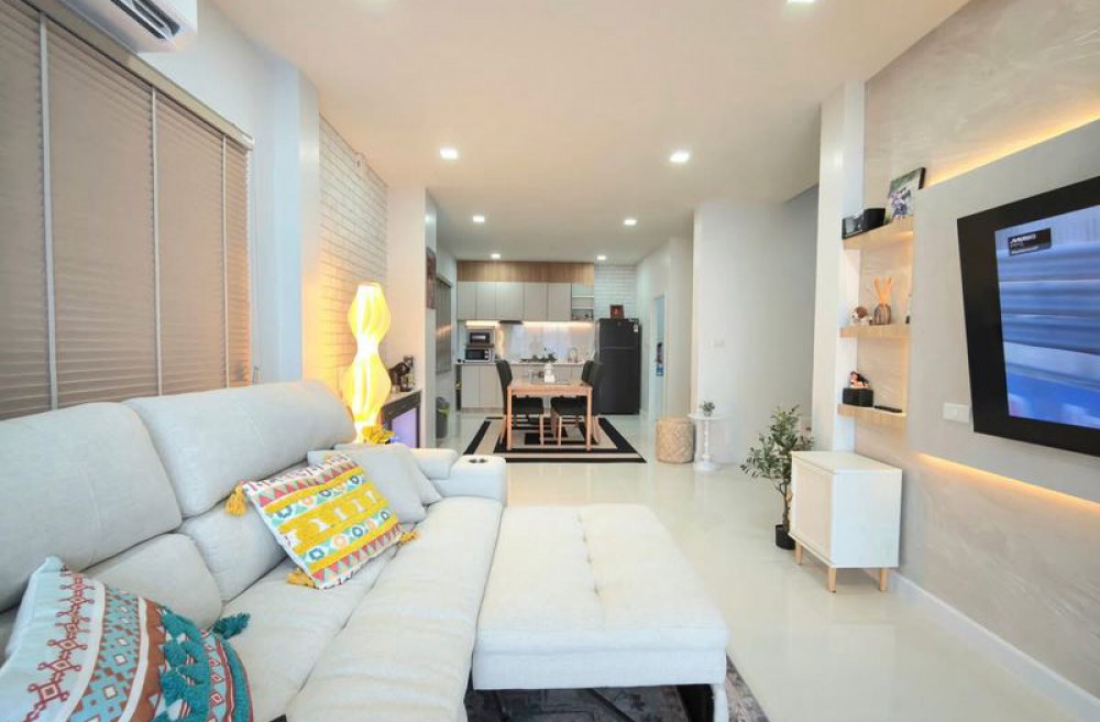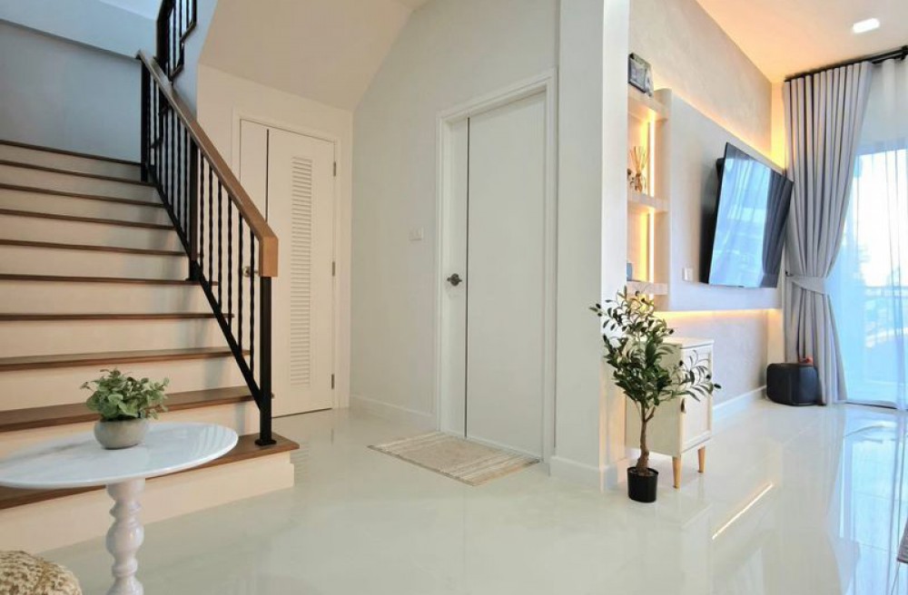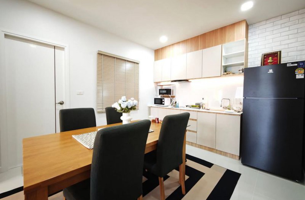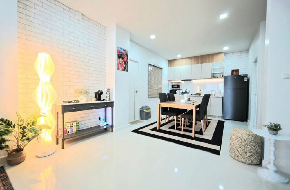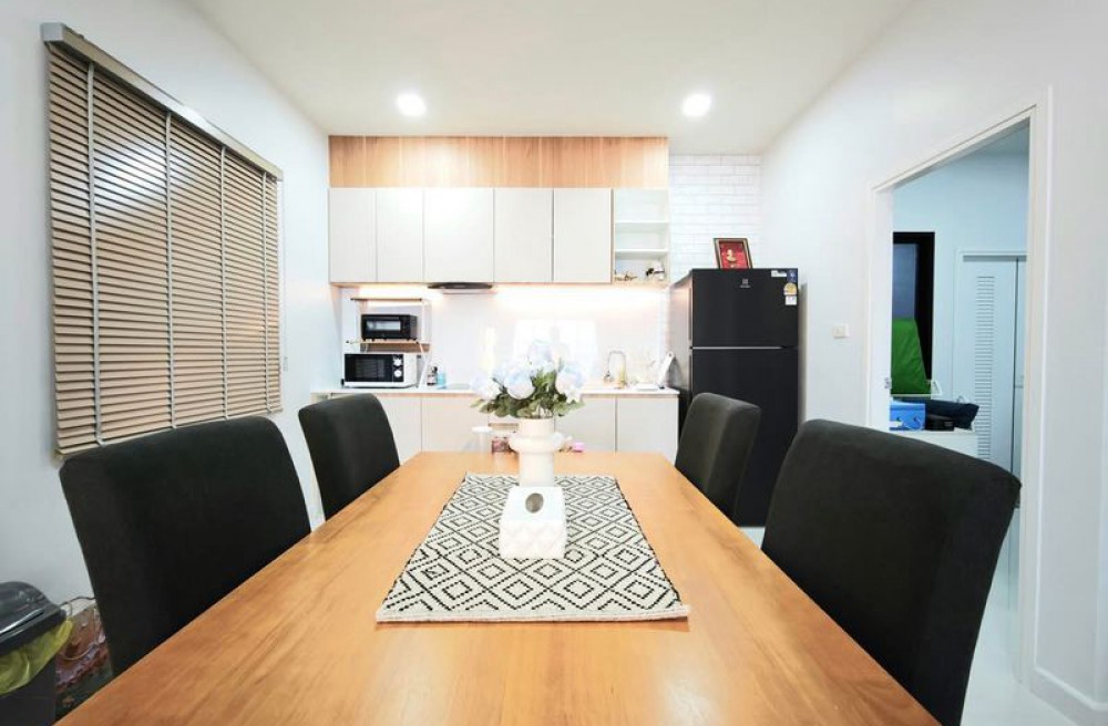 จุดเด่นพิเศษ ตกแต่งครบทั้งบิ้วอิน + เฟอร์นิเจอร์ลอยตัว เครื่องใช้ไฟฟ้าครบ พร้อมเข้าอยู่ ต่อเติมครัวไทย + โซนซักล้าง + หลังคาที่จอดรถเรียบร้อย ติดผ้าม่านกันแสง + มู่ลี่ไม้แท้ทั้งหลัง
