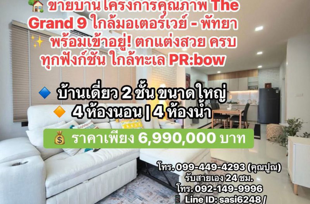 บางละมุง , จังหวัดชลบุรี# ขายบ้านโครงการคุณภาพ The Grand 9 ใกล้มอเตอร์เวย์ - พัทยา# ขายบ้านโครงการคุณภาพ The Grand 9 ใกล้มอเตอร์เวย์ - พัทยา พร้อมเข้าอยู่! ตกแต่งสวย ครบทุกฟังก์ชัน ใกล้ทะเล PR:bow