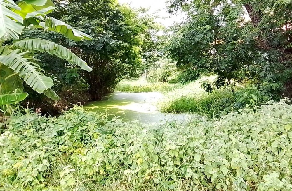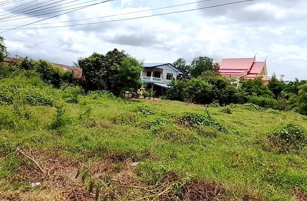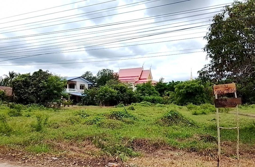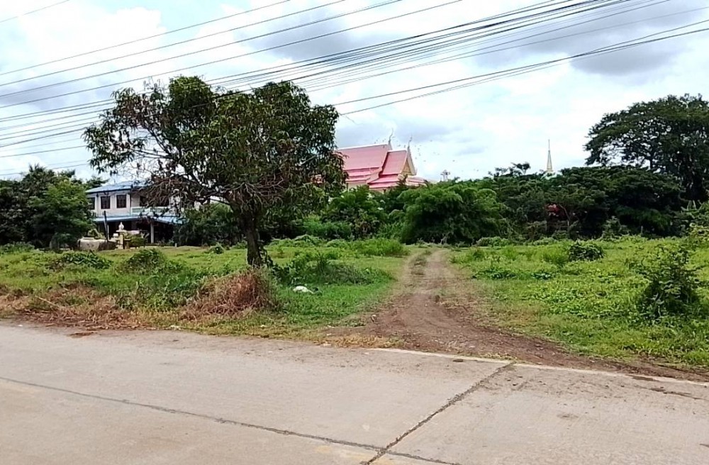 ที่ดินถมแล้ว ด้านหน้าติดถนนหลวง ด้านหลังมีคลองเล็ก มีถนนเชื่อมไปหาวัดได้