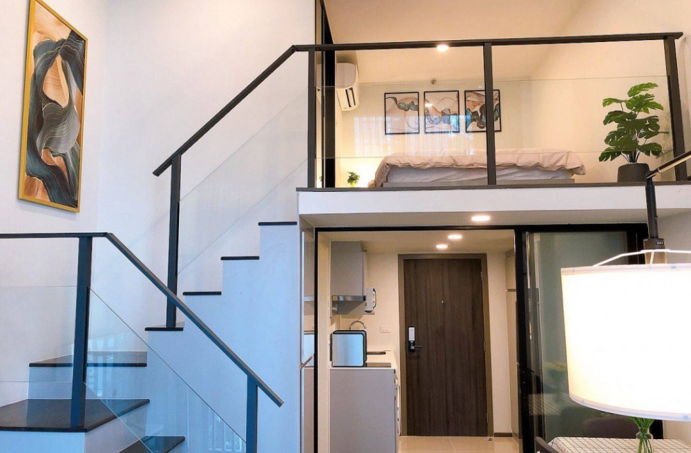 "ห้องสวยหรู สไตล์ Duplex เพดานสูง ตกแต่งครบ พร้อมเข้าอยู่