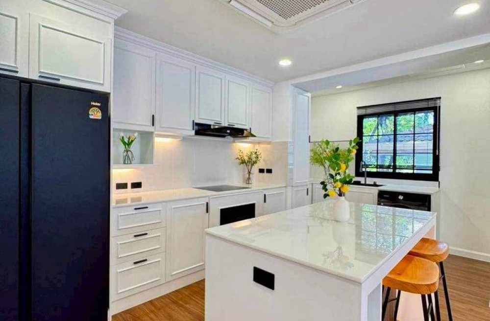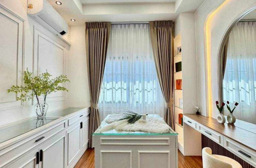 เฟอร์นิเจอร์บิ้วอิน + เครื่องใช้ไฟฟ้าครบ: แอร์รวม 8 ตัว 9000 BTU × 1 12000 BTU × 3 แอร์ฝังฝ้า 4 ทิศทาง 28000 BTU × 3 เครื่องซักผ้าฝาหน้า Samsung 9 กก. เตาอบ 2800 วัตต์ เตาไฟฟ้า 4 หัว + ฮูดดูดควัน ตู้เย็น 2 ประตู ทีวี 65 นิ้ว ปั๊มน้ำ + ถังน้ำ 2000 ลิตร ประตูรั้วไฟฟ้า รีโมท