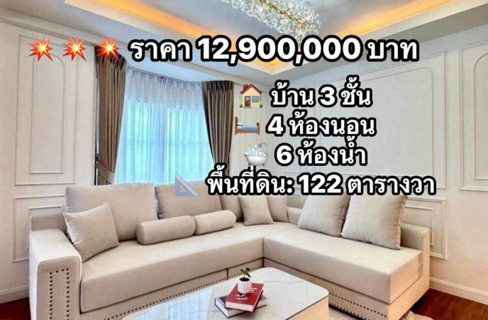 บ้าน 3 ชั้น 4 ห้องนอน 6 ห้องน้ำ พื้นที่ดิน: 122 ตารางวา (≈ 488 ตร.ม.) สระว่ายน้ำส่วนตัว ขนาด 4.5 × 15 เมตร
